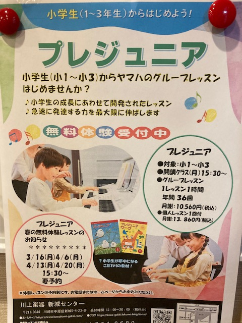 こんにちは。新城センターでは小学生からのグループレッスン、プレジュニア募集中です!! 仲間と共に歌い・弾く(周りの音に耳を働かせる)ことを通してテンポ感や等速感、アンサンブルの感覚といった力を育むグル...